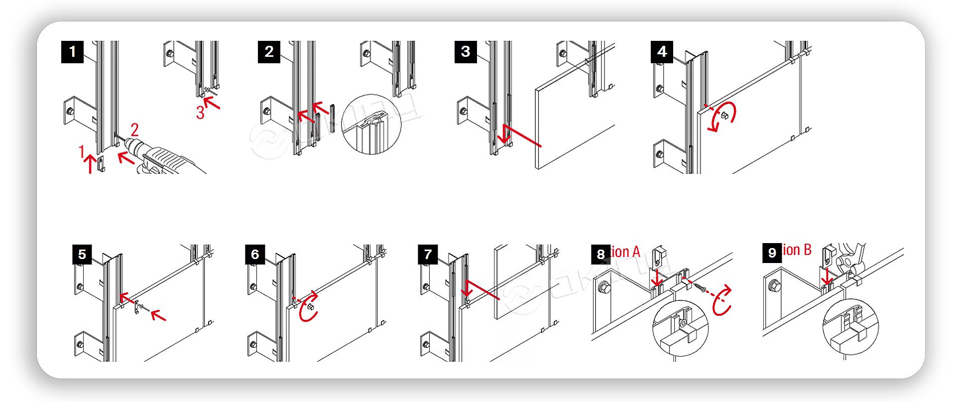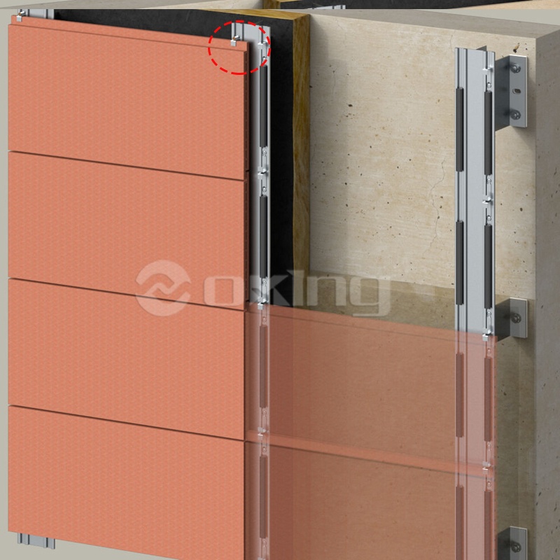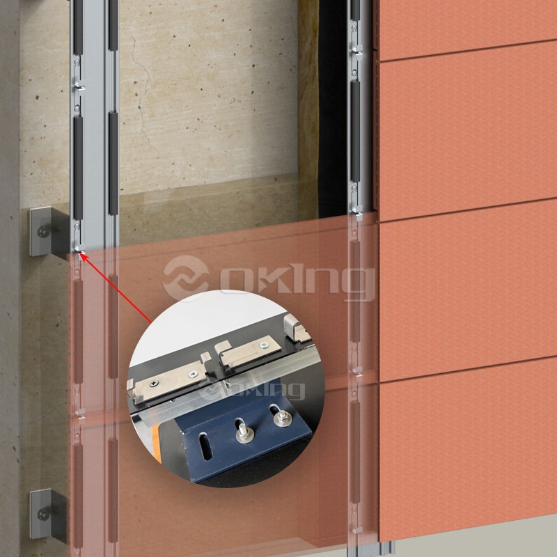 Specijalizirani sustav pričvršćivanja fasadnih ploča: kompatibilan sa skrivenom ugradnjom terakota ploča i vidljivom pričvršćivanjem keramičkih ploča. Opremljen s više varijanti opcija za različite potrebe primjene, usvaja vidljive rubne stezaljke za vidljivo pričvršćivanje tankih fasadnih ploča (npr. keramike) i ugrađene rubne stezaljke za skriveno pričvršćivanje terakota ploča, osiguravajući stabilne i prilagođene učinke pričvršćivanja.
