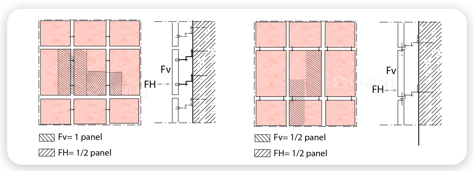 Postupak ugradnje uključuje pričvršćivanje okomitih nosača na zid ili strukturu pomoću odgovarajućih spojnih elemenata kao što su vijci ili vijci. Horizontalne konzole, poput panela ili sustava obloga, zatim se pričvršćuju na objekt koji se postavlja. Horizontalni nosači dizajnirani su za spajanje s okomitim nosačima, stvarajući sigurnu i pouzdanu vezu.