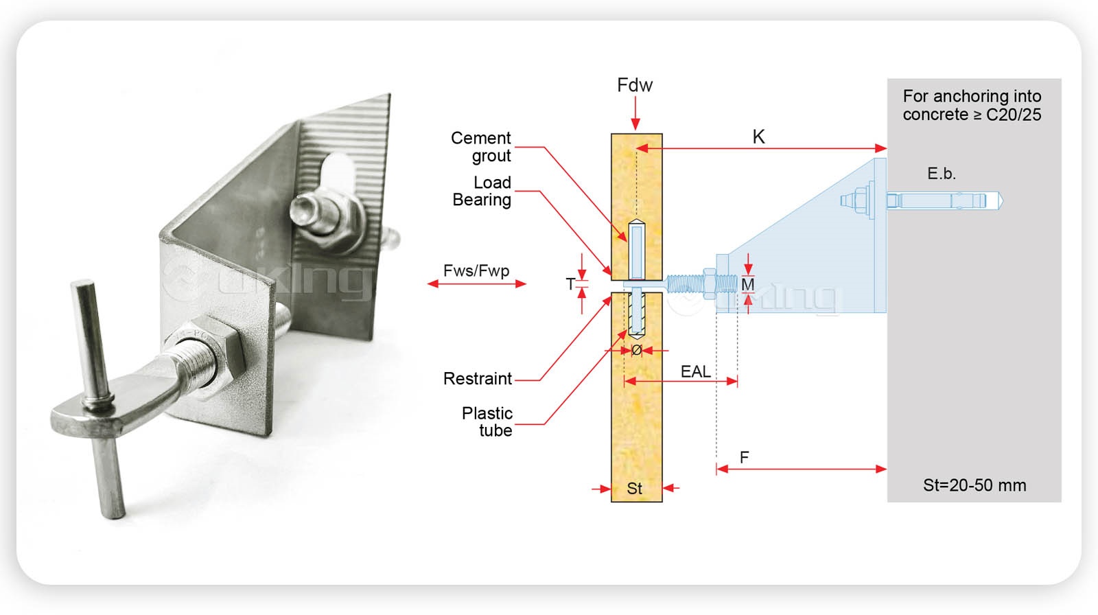 | K (mm) | K - (mm) | K (mm) | Fdw (N) | F (mm) | Fwp (N) | Fws (N) | E.b.(mm) | f (mm) | M (mm) | T (mm) | EAL (mm) | |
